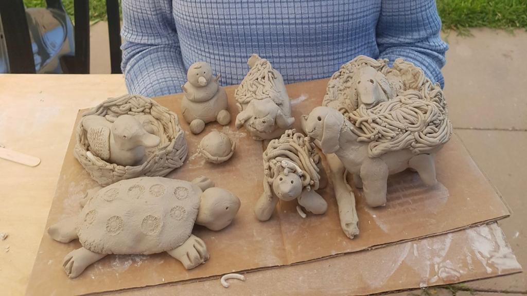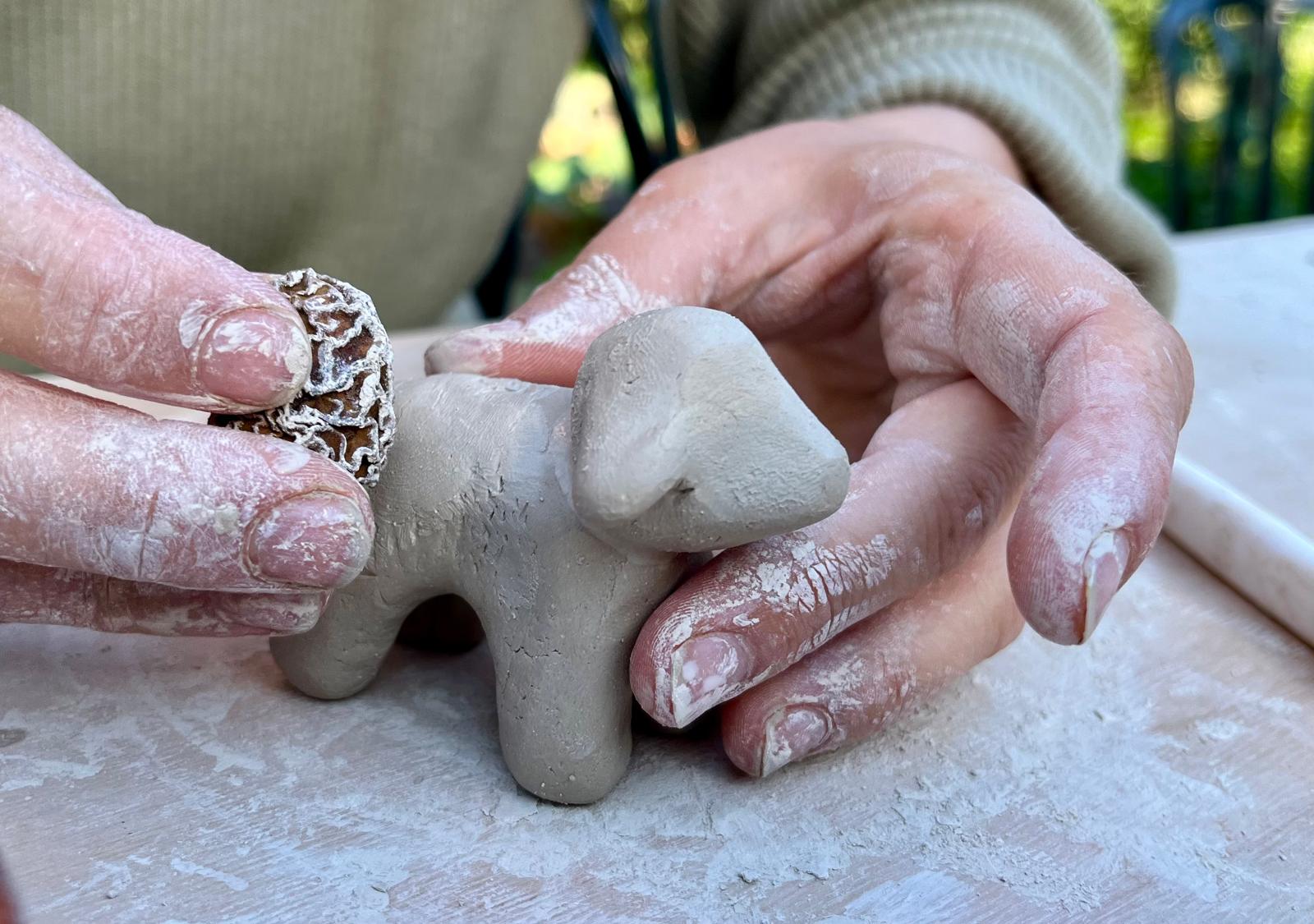 במהלך המפגש נחווה גם התנסות בתרגיל קבוצתי קצבי, שמח ומשחרר של עבודה בחומר.